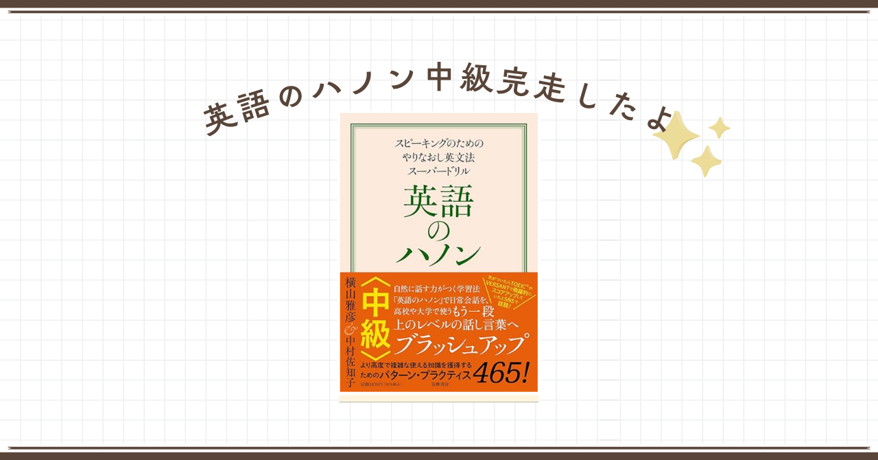 先日英語のハノンの初級を終えました!一周してみての変化を綴ります。 英語のハノンは英文法を「分かる」→「実際に使える」ようになるためのスピーキング練習ドリルで…