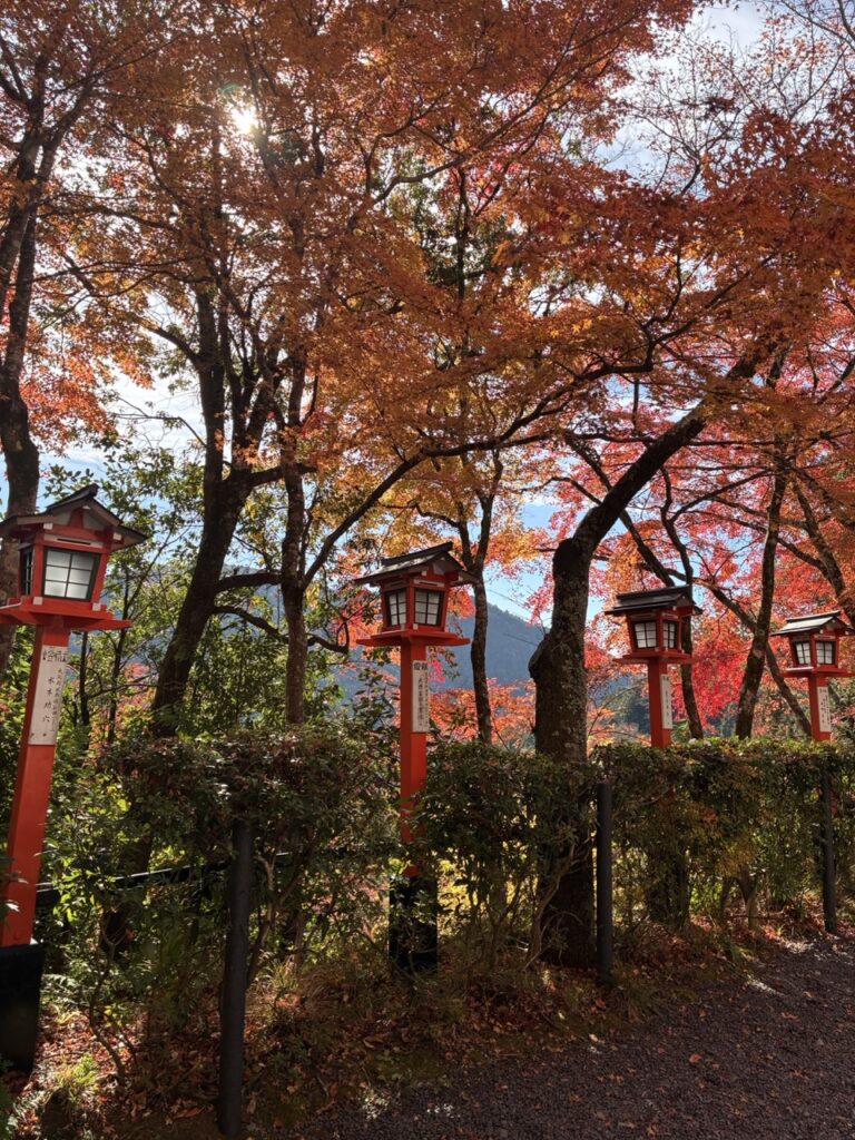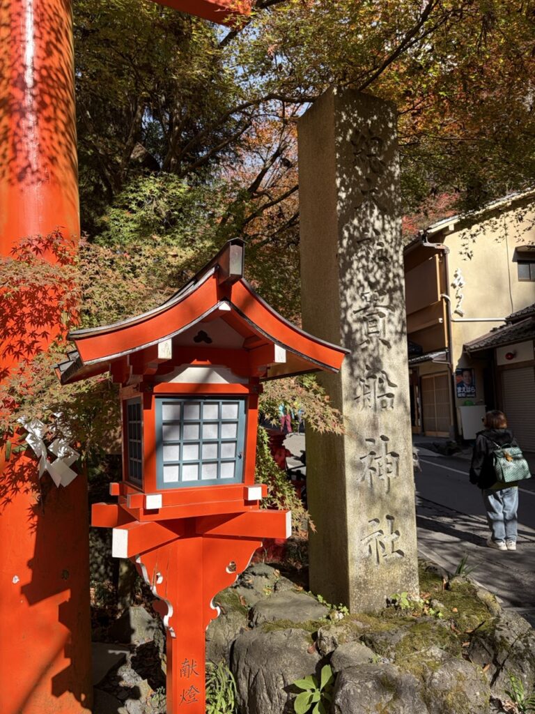 灯篭の赤と紅葉の赤がとてもよく合う。