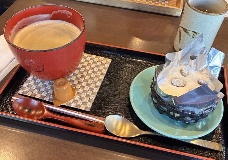 お豆の乗ったクリームの下が絹ごし緑茶てぃらみす。