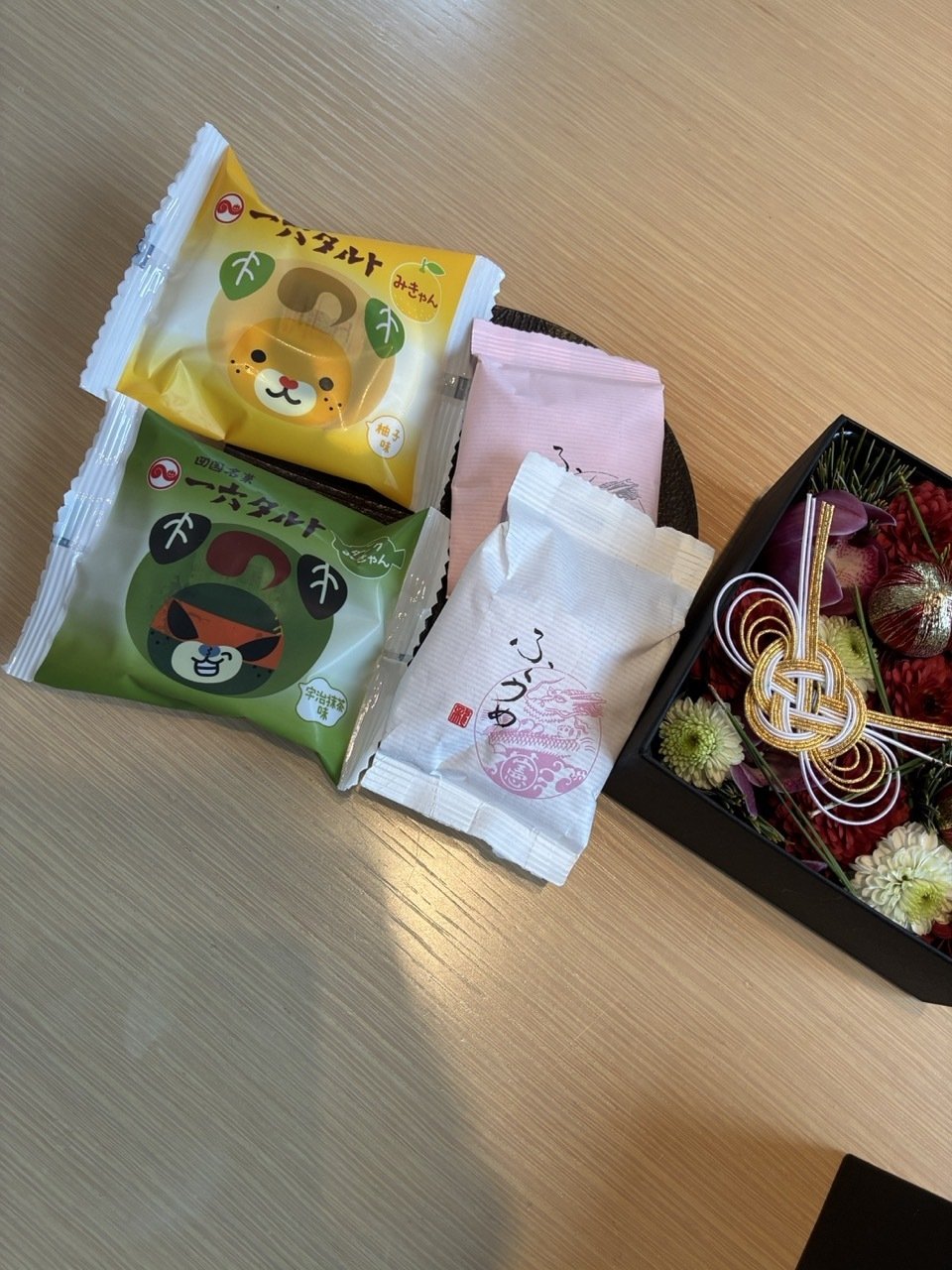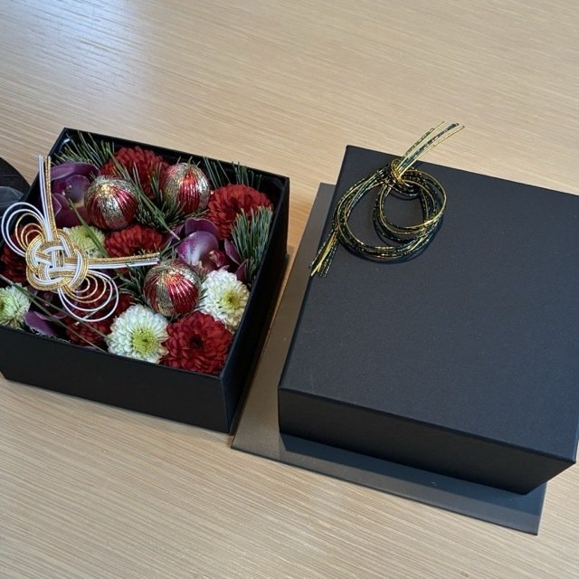 新年ということで、お正月飾りのお花が机に飾られていた。