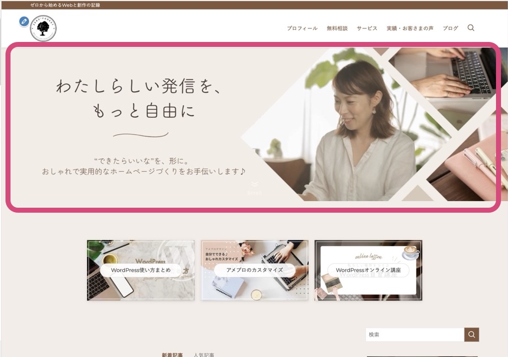 WordPressのテーマによってはサイトタイトルや好きな文字をヘッダーに表示する機能があります。