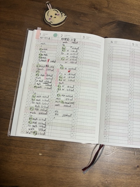 年間ページを使って、その日の運動を記録。
