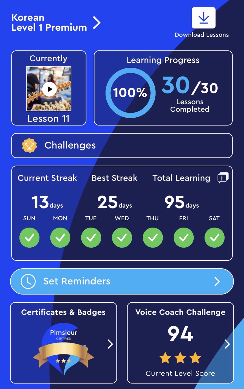 私は、同じレッスンを2〜3回復習して、学んだフレーズを単語帳アプリに入れて、80%くらいわかるようになったら次に進む形で進めていました。